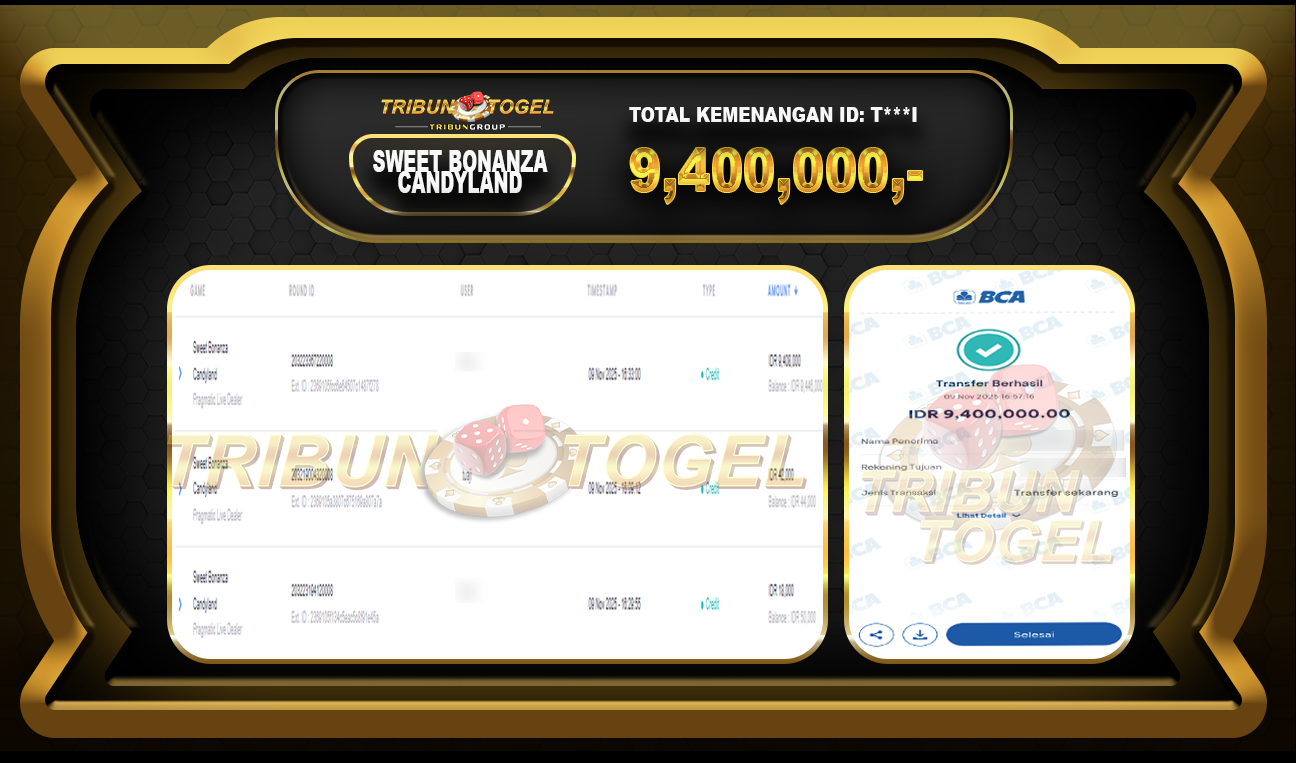 Kami ucapkan selamat kepada user ID : T***i telah berhasil withdraw sebesar Rp. 9,400,000,- di game : SWEET BONANZA CANDYLAND Bukti pembayaran jackpot member Tribuntogel kami bayar lunas dengan waktu paling singkat.