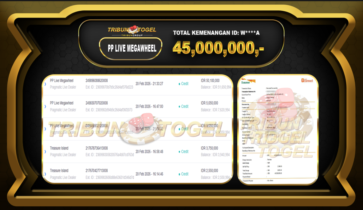 Kami ucapkan selamat kepada user ID : W****a telah berhasil withdraw sebesar Rp. 45,000,000,- di game : PP LIVE MEGAWHEEL
