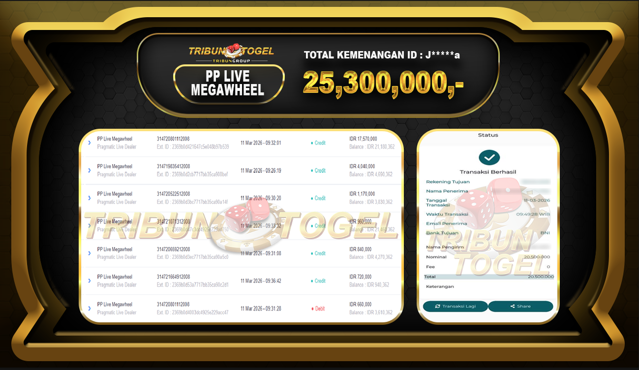 Kami ucapkan selamat kepada user ID : J*****a telah berhasil withdraw sebesar Rp. 25,300,000,- di game : PP LIVE MEGAWHEEL