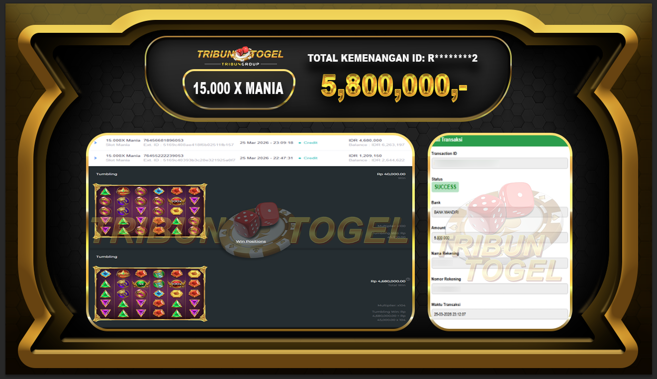 Tidak diragukan lagi bukan ? Tribuntogel mampu bayar berpapun nominal withdraw / penarikkan anda jika jackpot berapapun pasti akan di bayar lunas. Daftar dan bermain di Tribuntogel secepatnya dikarenakan hadiah besar menanti anda, cukup dengan satu (1) username ID anda sudah bisa bermain di seluruh permainan disitus TRIBUNTOGEL.