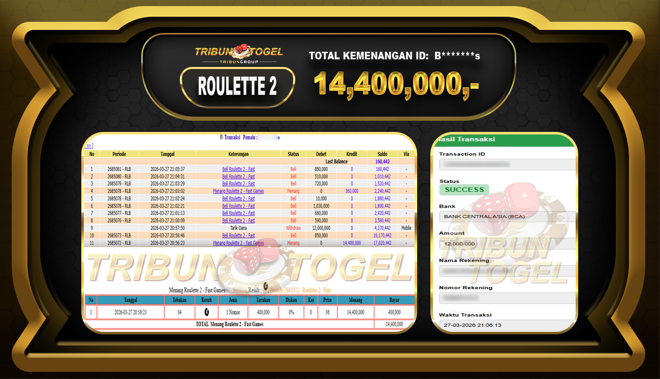 BUKTI PEMBAYARAN ROULETTE TRIBUNTOGEL RP. 14,400,000,-
