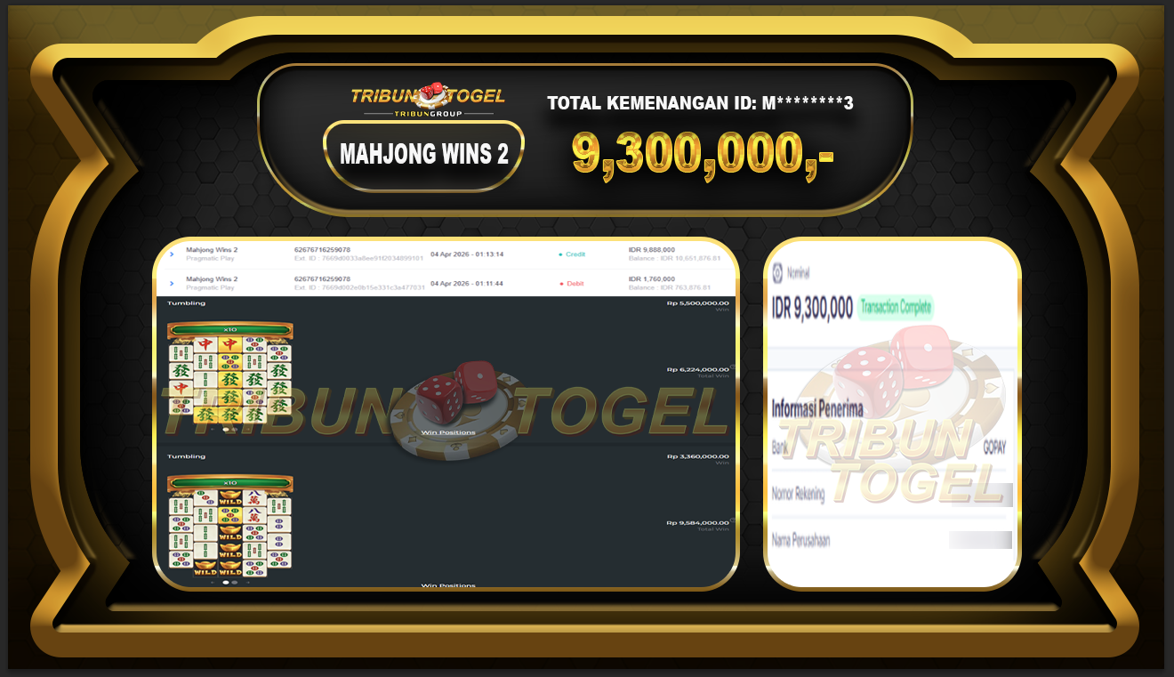 Kami ucapkan selamat kepada user ID : M********3 telah berhasil withdraw sebesar Rp.9,300,000,- di game : MAHJONG WINS 2 Bukti pembayaran jackpot member Tribuntogel kami bayar lunas dengan waktu paling singkat.