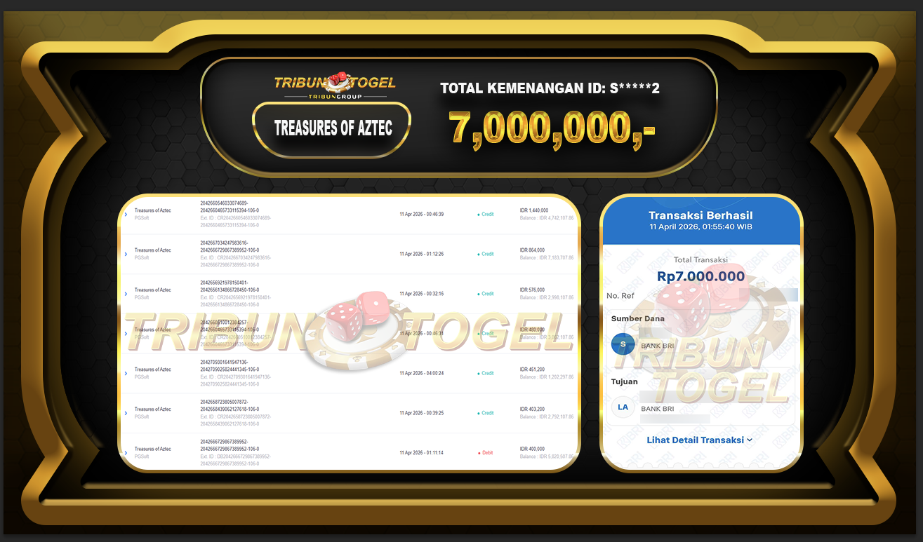 BUKTI PEMBAYARAN SLOT TRIBUNTOGEL RP. 7,000,000,- GAME : SLOT TREASURES OF AZTEC 1000 (USER ID : S*****2) TANGGAL |11-04-2026| CASH LUNAS !!!