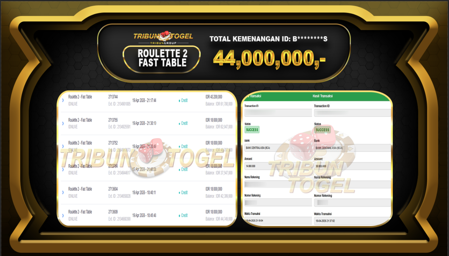 BUKTI PEMBAYARAN ROULETTE TRIBUNTOGEL RP. 44,000,000,-