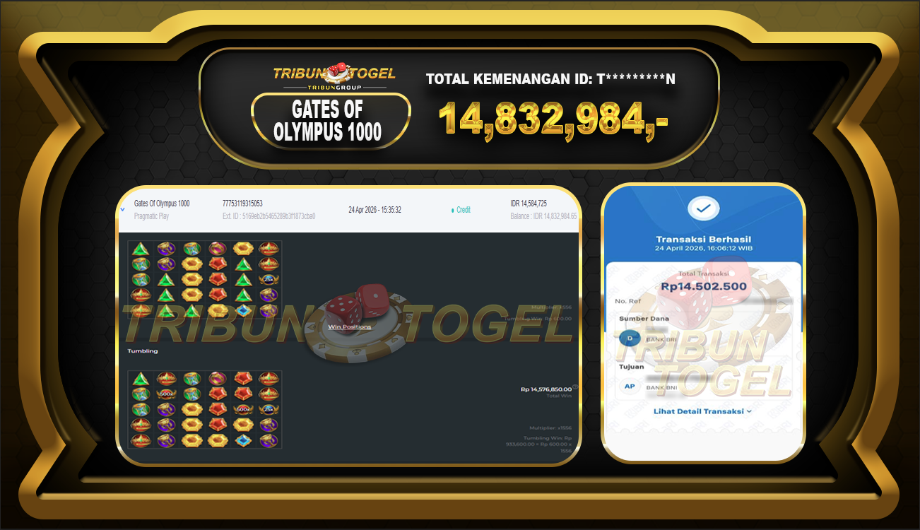 BUKTI PEMBAYARAN SLOT GATES OF OLYMPUS 1000 TRIBUNTOGEL Rp. 14,832,984,-