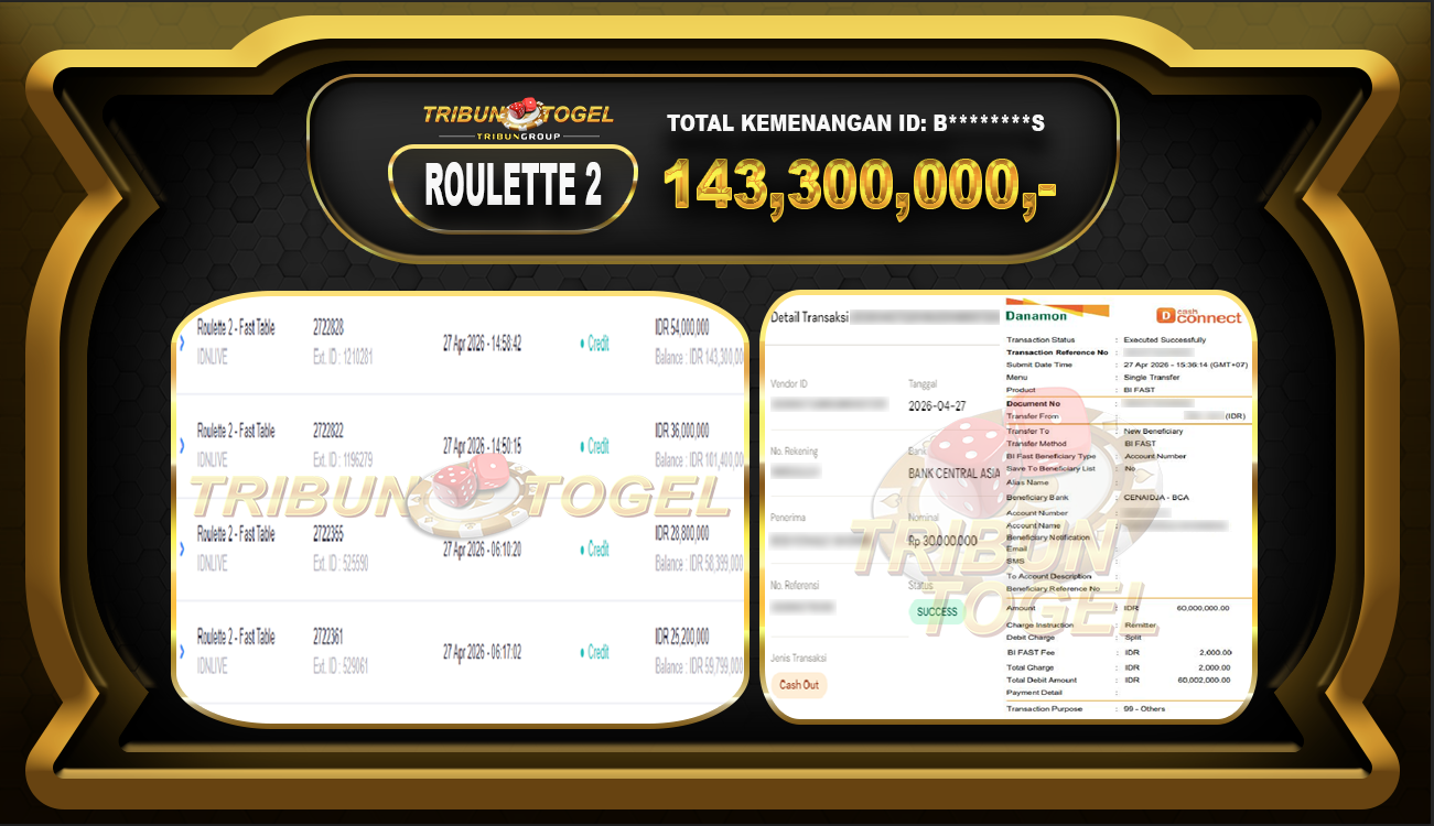 BUKTI PEMBAYARAN ROULETTE TRIBUNTOGEL RP. 143,300,000,-